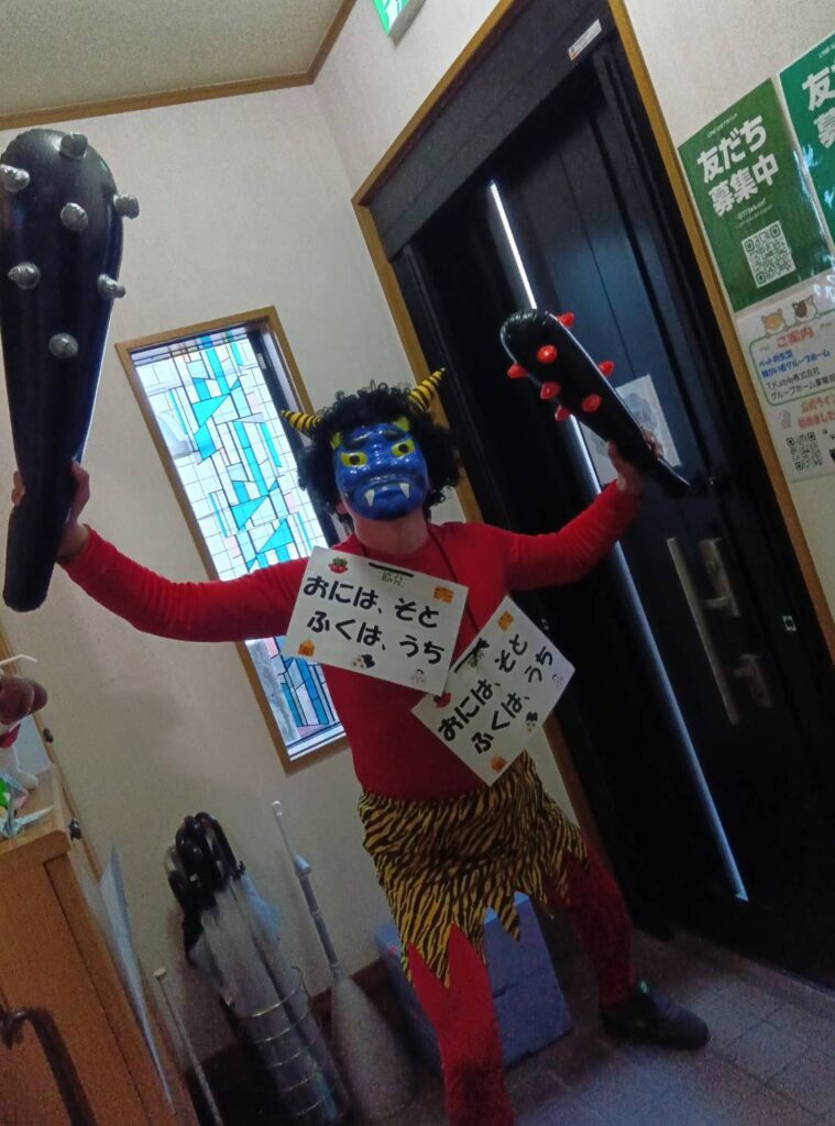 また利用者さんは‘’あの鬼さん誰よ‘’なんて話しも飛び交っていて誰か扮装してるんちゃうんって思っ